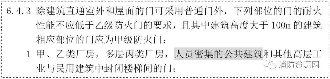 (2)第6.4.3条所述的“人员密集的公共建筑”,即人员密集场所中的公共建筑。